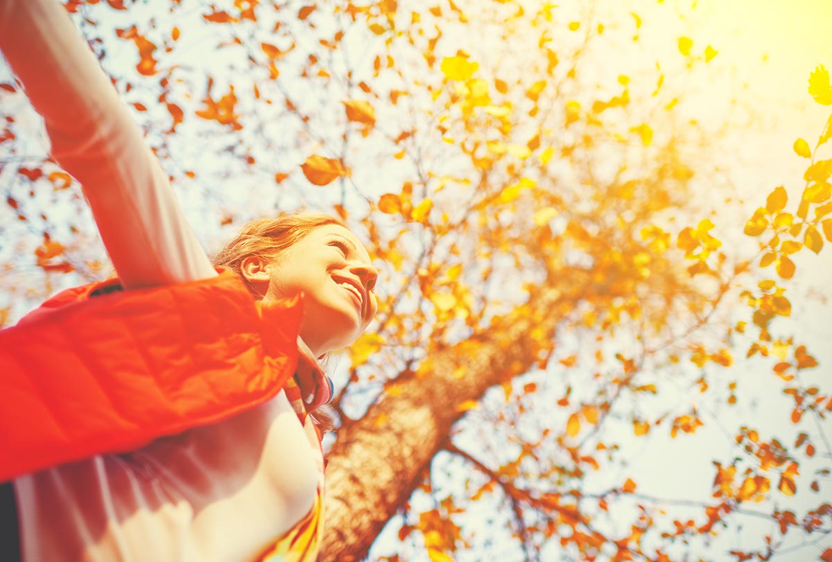 happy girl enjoying life and freedom in autumn on nature